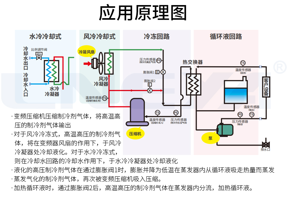 • 制冷劑R404A/R507C/R125/N40 四種制冷劑均可使用